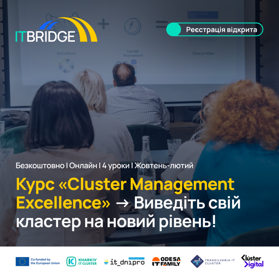 Виведіть свій кластер на новий рівень! Реєструйте команди на безкоштовний курс «Cluster Management Excellence» від ТОП-менеджерів Європи.Хочете підсилити управлінські навички та знайти надійних міжнародних партнерів? Запрошуємо на ексклюзивну серію з 4...