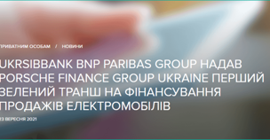 UKRSIBBANK BNP Paribas Group надав Porsche Finance Group Ukraine перший зелений транш на фінансування продажів електромобілів. Співпраця демонструє прагнення сталого розвитку о...