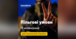 Читати повністюУ навчальному центрі інформаційних технологій CyberBionic Systematics діє безстрокова соціальна програма для учасників бойових дій, які є громадянами України. Учасниками програ...