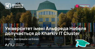 Читати повністюДо спільноти Kharkiv IT Cluster приєднався один із приватних ЗВО України — Університет імені Альфреда Нобеля. Тепер учасники Kharkiv IT Cluster мають ще більше доступу до молоди...