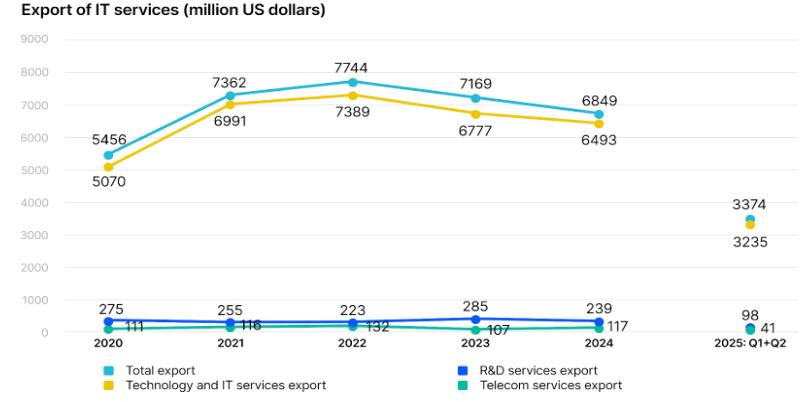Dynamics of Ukraine's IT services exports 2020-2025 (according to NBU data)