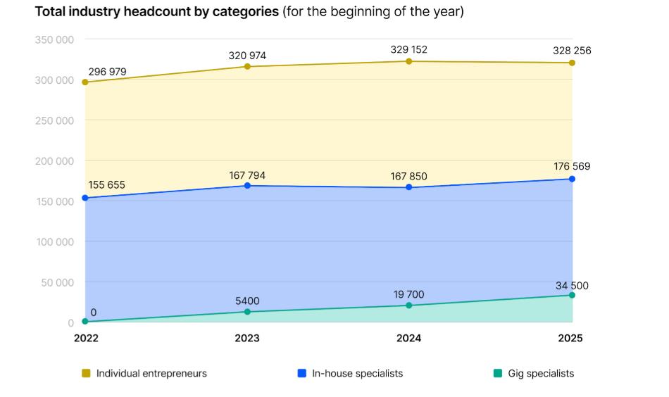 Number of IT industry specialists by category (according to YCMarket data)