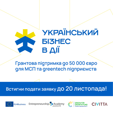 «Український Бізнес в дії» – грантова підтримка до 50.000 євро для українських МСП та greentech підприємств, що постаждали від російсько-української війни