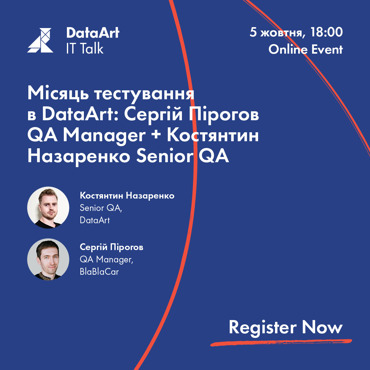 DataArt запрошує на IT talk "Місяць тестування в DataArt: Cергій Пірогов QA Manager + Костянтин Назаренко Senior QA".