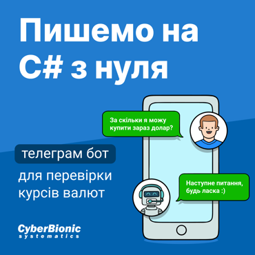 CyberBionic Systematics запрошують на безкоштовний курс - Пишемо мовою C# з нуля телеграм-бот для моніторингу курсу валют.