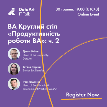 DataArt запрошує на IT talk: BA Круглий стіл "Продуктивність роботи BА": ч. 2 🔥
