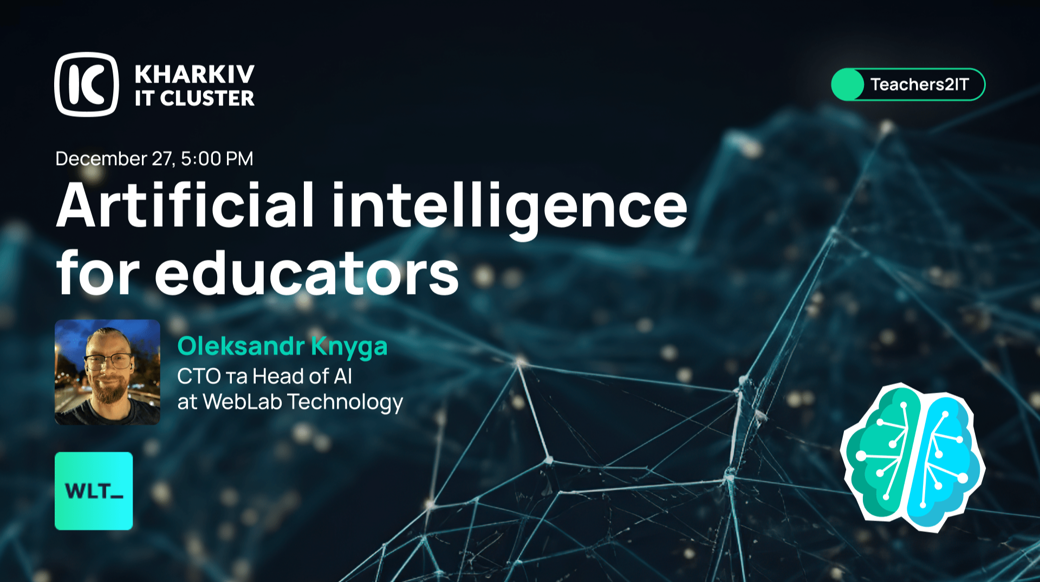 Kharkiv IT Cluster and the IT company WebLab Technology invite educators to join the Teachers2IT webinar, «Artificial intelligence for educators».