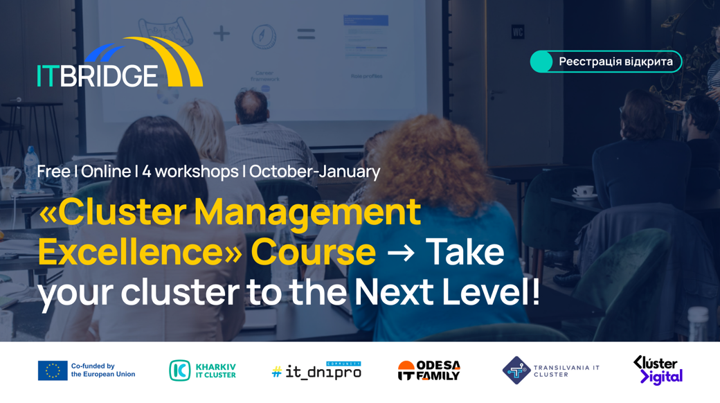 Ready to enhance your management skills and build powerful international partnerships? Join us for “Cluster Management Excellence,” an exclusive series of 4 online workshops designed for managers and teams of European and Ukrainian technology and industry clusters.