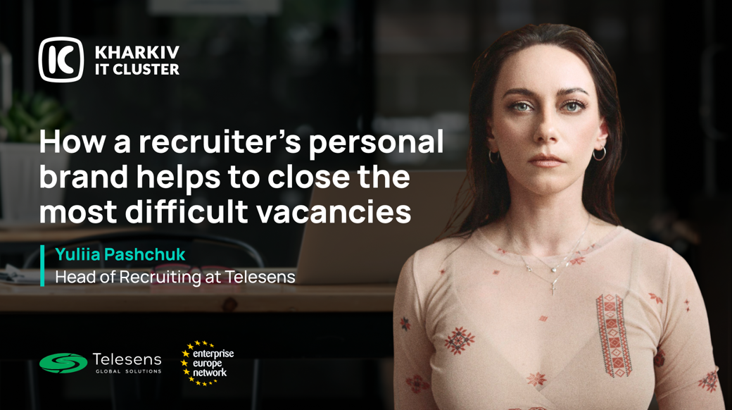 On May 13 at 16:00, Kharkiv IT Cluster invites you to an online hands-on workshop with Yuliia Pashchuk, Head of Recruiting at Telesens, as part of the digitalization marathon by the Enterprise Europe Network (EEN). Yuliia will share field-tested approaches to building a personal brand in IT recruiting.