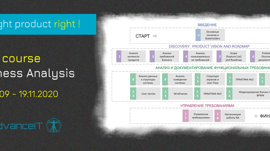 "Business Analysis” Course by the AdvanceIT training center for those who already have experience in IT and are tasked with identifying, coordinating, documenting and translating software requirements.