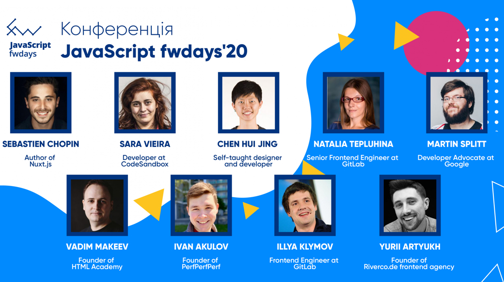 Впевнені, що хвилюючі питання виникають як у розробника-початківця, так і у прокачаного senior. А уяви, цілий день обговорень твоїх улюблених стеків, кейсів, технологій в одному місці! Саме це чекає тебе на JavaScript fwdays’20 conf, 14 березня 2020 року у Києві. Програма готова. Серед спікерів: ✅Sebastien Chopin (Nuxt.js) — автор Nuxt.js та член Vue.js ком’юніті, працює з JavaScript останні 13 років. ✅Martin Splitt (Google) — працює в компанії Google над Search & web ecosystems на позиції Trends Analyst / Developer Advocate, контриб’ютить в опенсорс та працює із найновішими технологіями. ✅Chen Hui Jing (Self-taught designer and developer) — дизайнерка та розробниця-самоучка, що проживає в Сінгапурі, з непомірною любов’ю до CSS. ✅Наталія Теплухіна (GitLab) — Vue.js Core Team Member, працює Senior Frontend Engineer в компанії GitLab. Спікерка на конференціях, пише статті на різноманітні теми, пов’язані з Vue.js. Здобула звання Google Developer Expert з веб-технологій. ✅Sara Vieira (CodeSandbox) — розробниця у @codesandbox, GraphQL та Open Source ентузіастка. ✅Юрій Артюх (Riverco.de) — засновник у Riverco.de frontend agency, тривалий час був html/css coder, тепер має пристрасть до анімації та WebGL. ✅Вадим Макєєв (HTML Academy) — пепелсбей в HTML Academy, керівник спільноти Веб-стандарты, ведучий та продюсер однойменного підкасту, організатор Web Standards Days. ✅Ілля Климов (JavaScript.Ninja) — Senior Frontend Engineer y GitLab, понад 12 років з JavaScript у всіх його проявах, засновник навчального ресурсу JavaScript.Ninja. Програма готова Крім цього, у кооперації зі Zlit, придумали новий альтернативний ком’юніті стейдж Code Block — про код і розмови. Тож запрошуємо активних розробників взяти участь і поділиться своїми знаннями з усіма. 🔥 А на Afterparty зробимо ще кiлька дискусiйних сесiй на нетехнiчнi теми з BeerJS. 👥JavaScript fwdays’20 conf