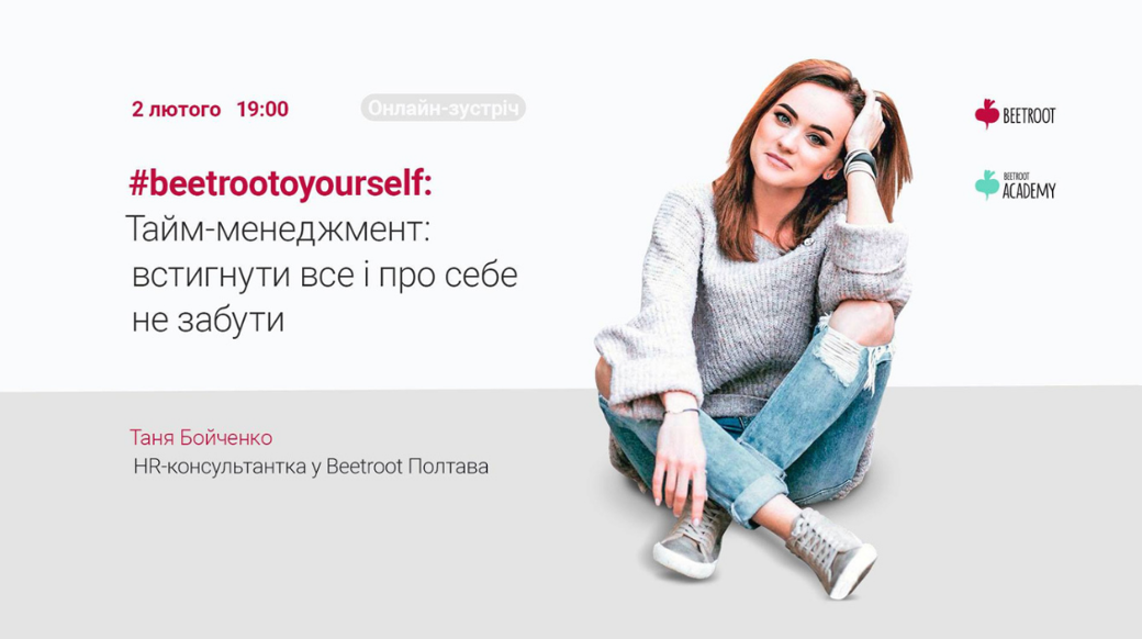 2 лютого о 19:00, в рамках серії зустрічей #beetrootoyourself , Таня Бойченко, HR консультантка у Beetroot Полтава, розповість про те: