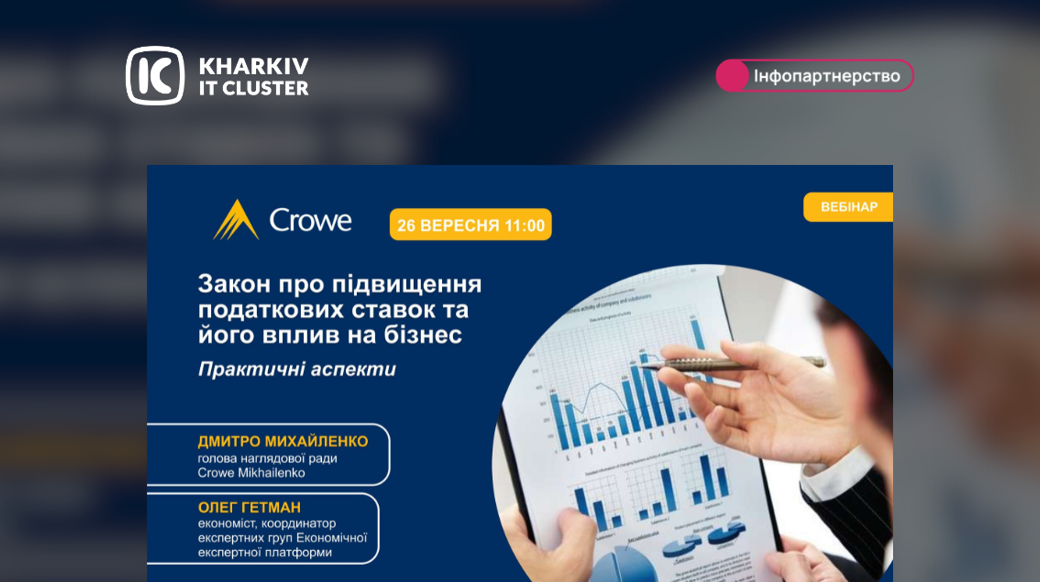 📢 Шановні друзі, Kharkiv IT Cluster запрошує вас на актуальний вебінар, який вже в цей четвер проведе команда Crowe Mikhailenko.  📅 26 вересня об 11:00