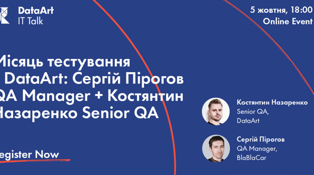 DataArt запрошує на IT talk "Місяць тестування в DataArt: Cергій Пірогов QA Manager + Костянтин Назаренко Senior QA".