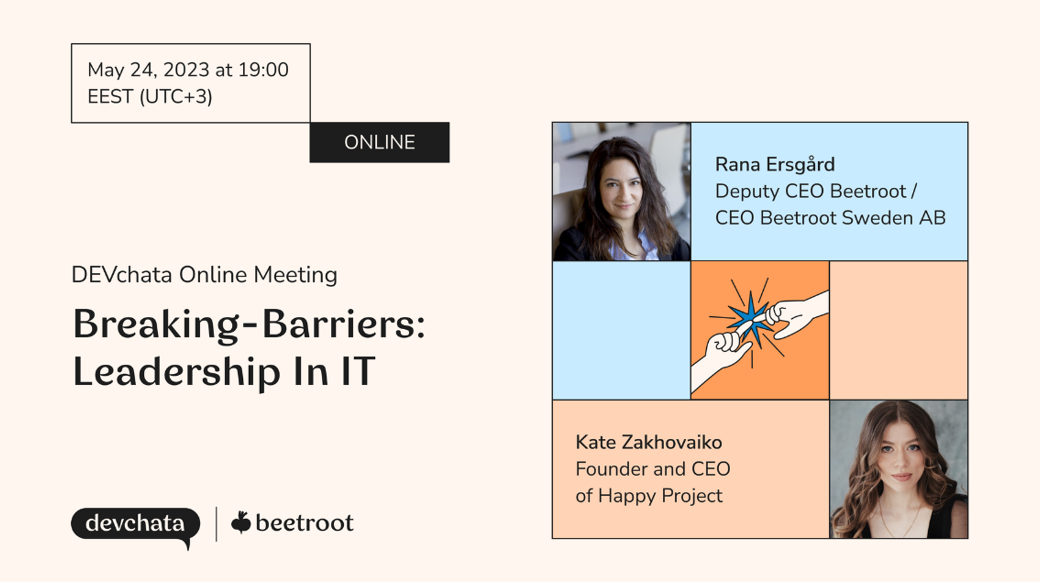 Ми поставили це запитання Рані Ерсгард — заступниці CEO IT-компанії Beetroot. Щоб почути її відповідь, приєднуйтесь до нової онлайн-зустрічі DEVCHATA, яка відбудеться 24 травня о 19:00 EEST (UTC+3). Темою дискусії буде «Breaking-Barriers: Leadership In IT».