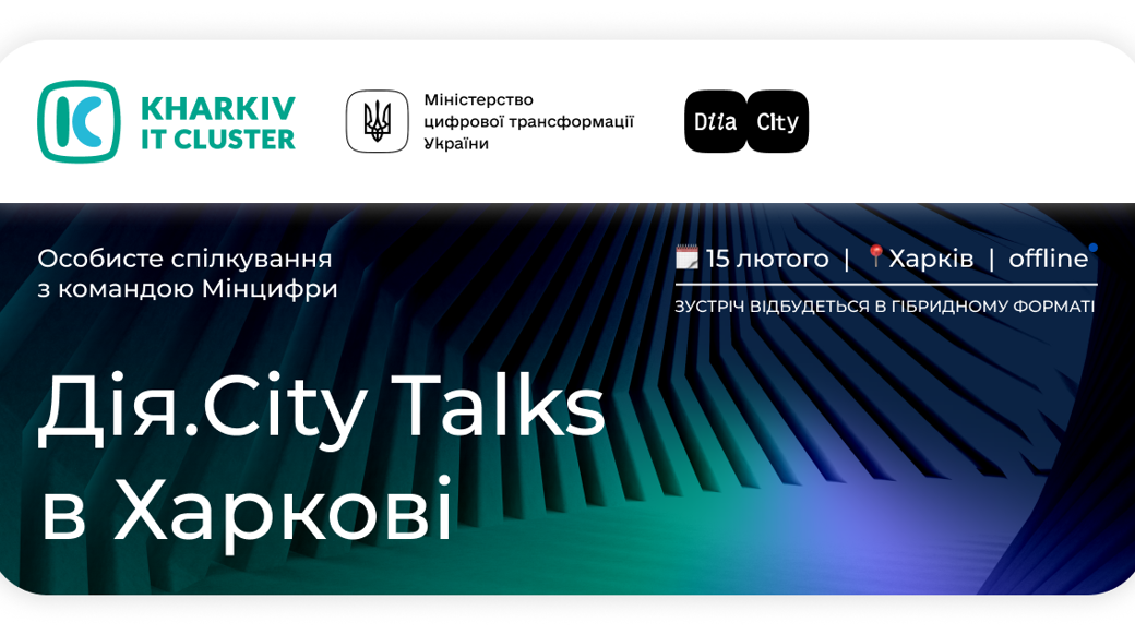 Запрошуємо на Дія.City Talks з Олександром Борняковим та командою Мінцифри в Харкові.