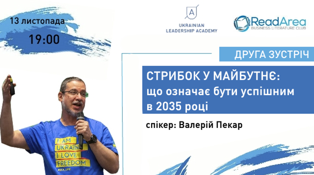 13 листопада в Харків завітає бізнес-консультант, викладач Lviv Business School (LvBS) та Kyiv-Mohyla Business School [kmbs], громадський діяч, футуролог та автор книги "Різнобарвний менеджмент" Валерій Пекар. Українська Академія Лідерства УАЛ Харків разом із всеукраїнським книжковим комьюніті ReadArea Business Literature Club запросили Валерія розкрити тему успіху в майбутньому, оскільки світ стоїть на порозі фантастичного технологічного стрибка, що глибоко змінює економіку, політику, освіту, сім'ю, культуру, релігію, мислення та все інше. Світ у 2035 році. Що робити нам та нашим дітям, щоб бути успішними у цьому світі? «Майбутнє вже тут. Воно просто нерівномірно розподілене», – сказав Вільям Гібсон.   Команда організаторів разом зі спікером Валерієм Пекарем вирішили, що учасники можуть не просто прийти та отримати нові знання, а ще й зробити добру справу - допомогти людині подолати рак.   Захід проводитиметься за донейт на ваш розсуд на підтримку Наталії Яковлевої, яка, в свою чергу, цього року залучила рекордну кількість міжнародних експертів SES (SES  – заснована провідними бізнес-асоціаціями і фінансована урядом Німеччини неприбуткова організація, що об'єднує понад 12 000 висококваліфікованих фахівців пенсійного віку, готових на волонтерських засадах надавати консультаційні послуги малим і середнім підприємствам, державним структурам, соціальним та освітнім установам) саме в області освіти для Харківської області. Пані Наталія - харківська активістка, засновниця БФ "Харків з тобою" організаторка Форуму лідерів змін.   Це жінка, яка не втрачає позитивного настрою, а її діяльність справді вражає - перше, що вона зробила після діагностування хвороби, - організувала бібліотеку якісної і позитивної літератури в ХОКОД. Також вона продовжує проводити консультації з міжнародних можливостей (близько 140 цього року), учасники яких подорожують по всьому світу (США, Канада, ЄС, Ізраїль, Туреччина).   О котрій годині: 19:00-21:00 Модератор зустрічі - Olga Shapran