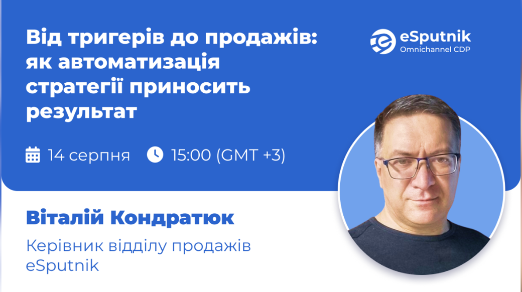 Спікер: Віталій Кондратюк, керівник відділу продажів CDP eSputnik, фахівець з розвитку бізнесу, продажів та retention-маркетингу.