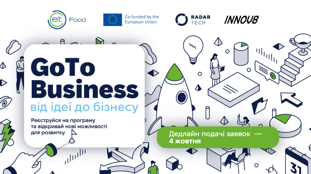 🌿 Дізнаєшся як власну бізнес-ідею перетворити на інноваційний бізнес 🌿 Отримаєш потрібні навички підприємництва від першокласних спікерів у сфері бізнесу та технологій 🌿 Дізнаєшся про інновації у сфері agrifood та можливості Європейського Інституту Інновацій та Технологій 🌿 Розшириш мережу корисних контактів та нових знайомств 🌿 Навчишся презентувати свою ідею та позмагаєшся з іншими учасниками за призовий фонд 35 00 грн 📆 Участь у програмі безкоштовна! Заявки приймаються до 4 жовтня на сайті. 📌Деталі та реєстрація за посиланням: http://www.gotobusinessua.comПрограма “Go to Business” реалізується компаніями @Radar Tech та @/nnov8 за підтримки Європейського Інституту Інновацій та Технологій в області харчових продуктів (@EIT Food) — найбільшою та найдинамічнішою спільнотою харчових інновацій у світі.