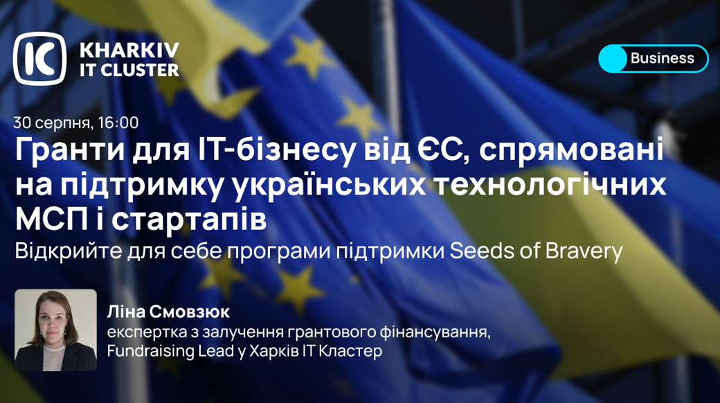 Долучайтеся до вебінару щодо грантової програми проєкту Seeds of Bravery, що фінансується Європейським Союзом у рамках Європейської інноваційної ради (EIC) 🌐