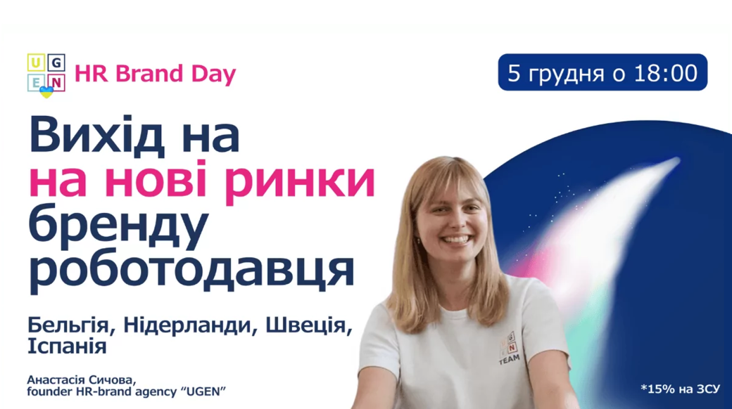 Запрошуємо на «HR Brand Day» від UGEN — професійний захід для Employer Brand specialists, де можна отримати свіжу аналітику ринку праці та актуальні поради з розвитку бренду роботодавця.