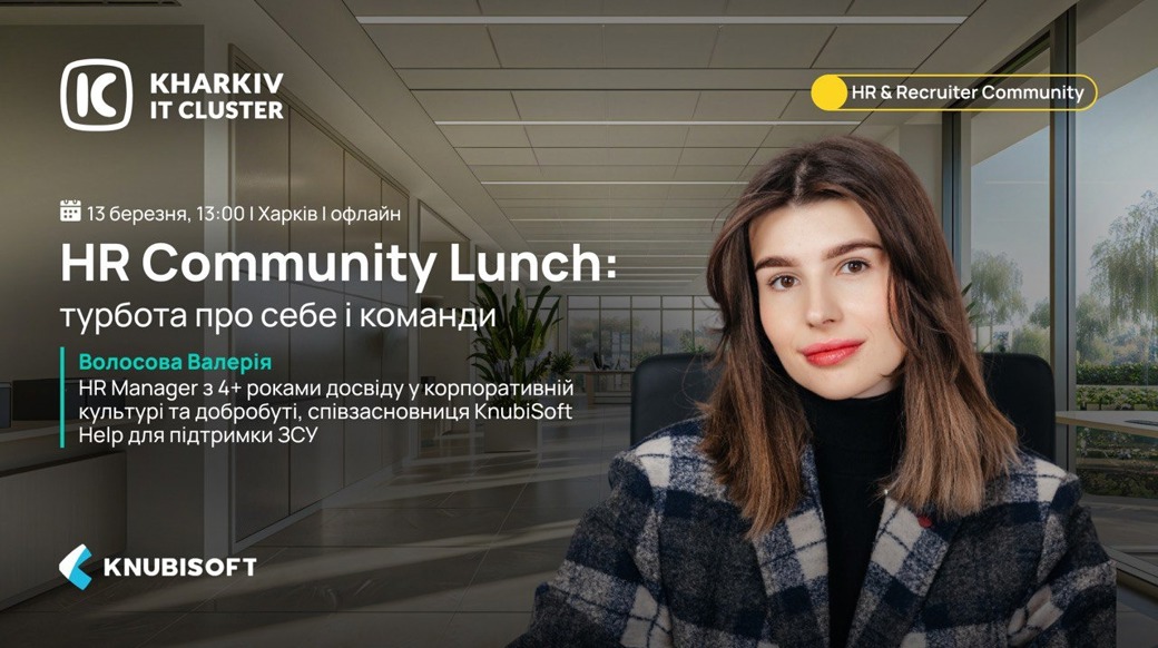 13 березня у Харкові Kharkiv IT Cluster проводить закриту офлайн-зустріч для HR & Recruiter community — камерний HR Wellbeing Lunch у форматі safe space.