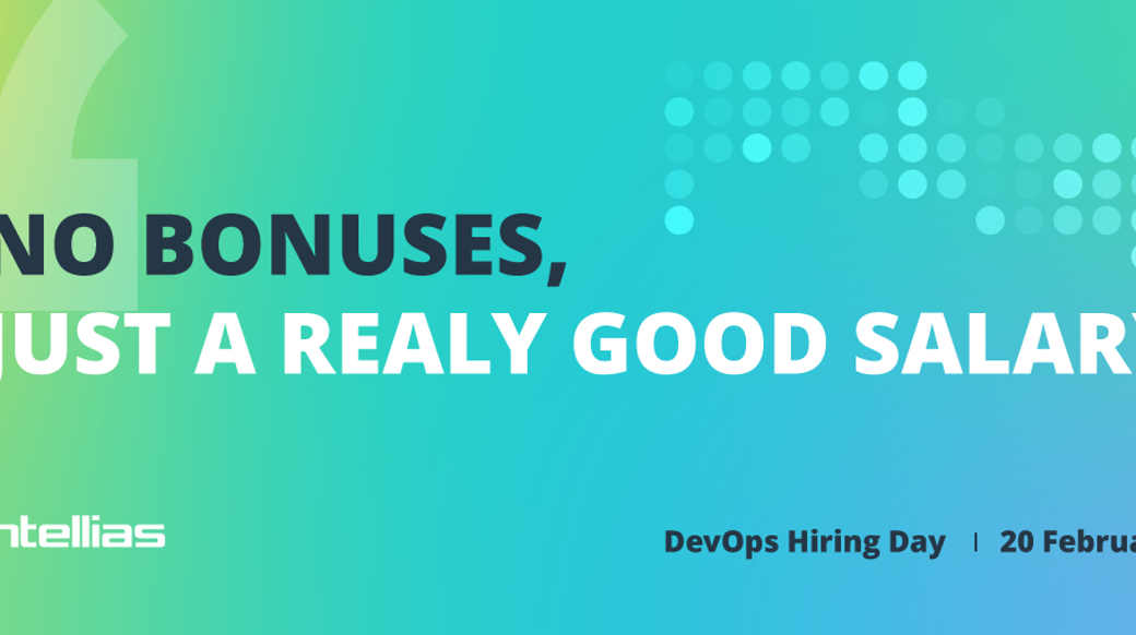 #Intellias запршує вас на DevOps Hiring Day! Як кажуть мудрі DevOps спеціалісти, краще мати класну зарплату щомісяця, ніж бонус – одноразово. Тож 20 лютого приєднуйся до #Intellias DevOps Hiring Day та насолоджуйся не одноразовою виплатою, а стрімкою кар’єрою, яку ми тобі запропонуємо, доречі, вакансії remote.