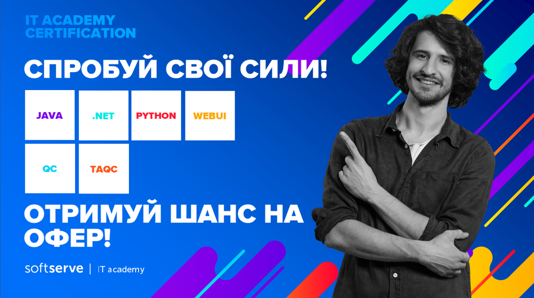 IT Academy Certification є безкоштовною, тож спробуй свої сили та вривайся в ІТ! Більше деталей та реєстрація - за посиланням