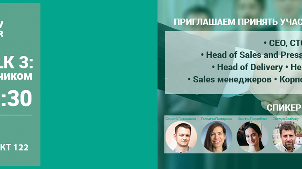 Тема заходу: "Контракти з замовниками". Чи знайома Вам ситуація, коли між Presales, Sales, Delivery Departments немає згоди з приводу основних бізнес умов проекту? Коли в процесі виконання проекту в контракті спливають "білі плями", які не на руку компанії. Як налагодити процес узгодження бізнес умов всередині компанії? Хто і як погоджує договір з клієнтом? Хто власник процесу підписання контракту? Які умови контракту є наріжними для компанії? Саме про це говоритимуть спікери.