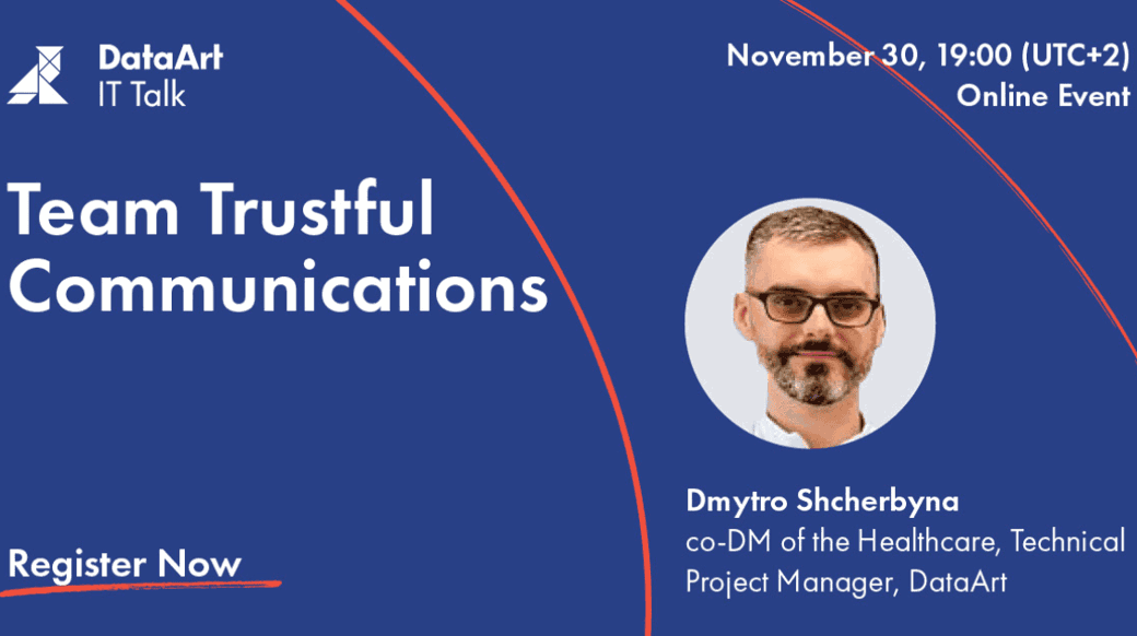 DataArt запрошує всіх зацікавлених на IT talk: “Team Trustful Communications” із Дмитром Щербиною, co-DM Healthcare практики, Technical Project Manager у DataArt.
