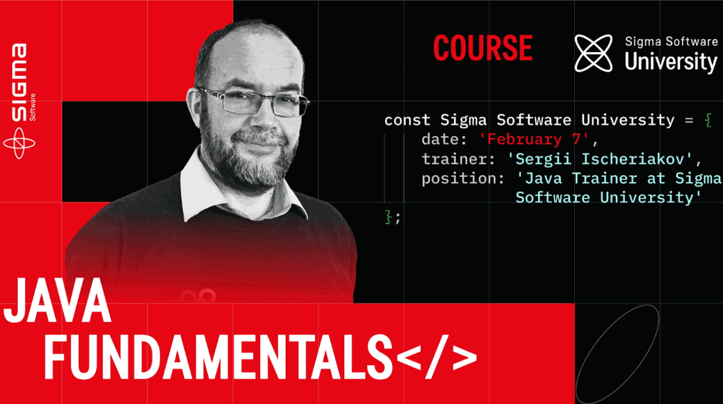 🤩 Sigma Software University запрошує тебе на курс JAVA FUNDAMENTALS з нашим топовим тренером Сергієм Іщеряковим, який поділиться своїм досвідом у сфері та змінить твоє уявлення про Java, гарантуємо :)