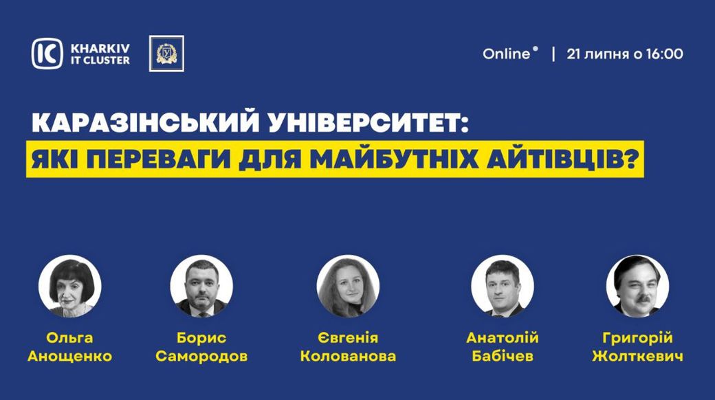 🔥 21 липня о 16:00 Kharkiv IT Cluster разом із Каразінським університетом проведе зустріч «Каразінський університет: які переваги для майбутніх айтівців?».