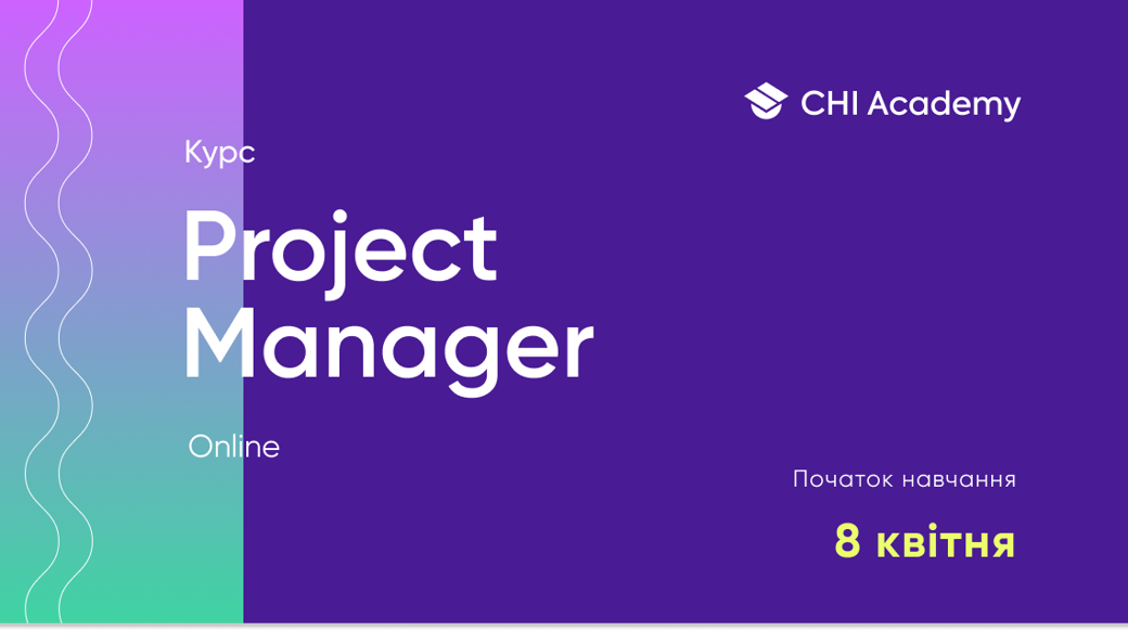 Усі необхідні знання, інструменти та методології для успішної роботи менеджера, а також особисті робочі фішки та лайфхаки від лектора з більш ніж 10-річним досвідом – це те, чому ти навчишся на курсі Project Manager від CHI IT Academy.