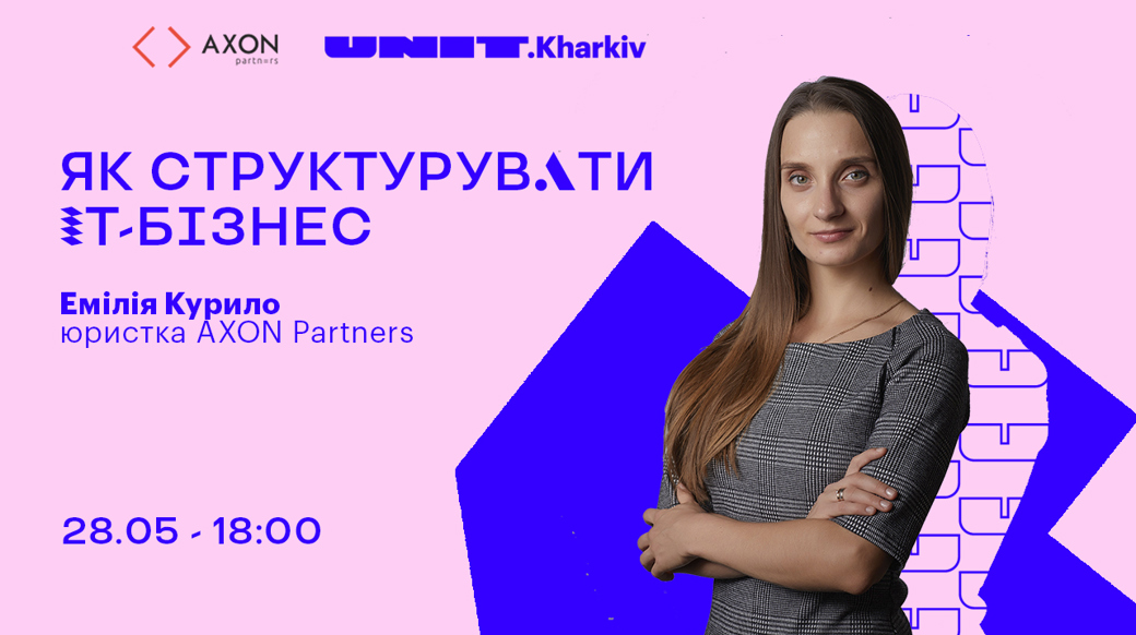 28 травня запрошуємо на безкоштовну відкриту лекцію від резидентів UNIT.City у Харковi - юридичної компанії Axon Partners.