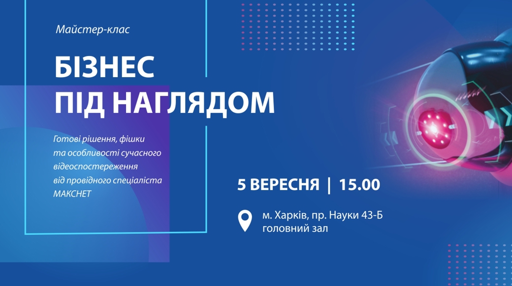 Якщо так, приходьте 5 вересня на майстер-клас компанії «Макснет» та дізнайтеся все про тренди відеоспостереження в Україні та світі!