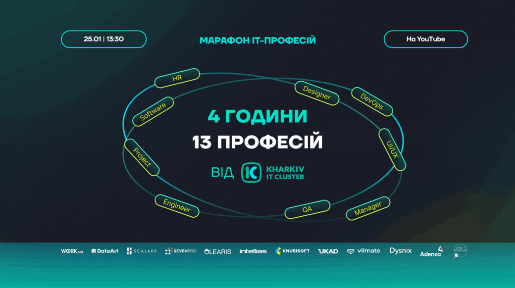 🤔 Ти абітурієнт, студент або світчер? Хочеш дізнатися більше про ІТ-професії, але немає бажання витрачати на пошук інформації багато часу? Kharkiv IT Cluster має рішення! Приходь на Марафон ІТ-професій, де провідні ІТ-компанії України в експрес-форматі розкажуть тобі про 13 різноманітних ІТ-професій! ⏰ Коли: 25 січня о 13:30 📍 Формат: Online, YouTube (тільки за посиланням) 😉 Для повного розуміння того, що тебе чекає на Марафоні ІТ-професій, дивись нижче план зустрічі: 🔹 13:30-13:40 Вступна частина та знайомство з представленими професіями; 🔹 13:40-14:00 Яшунін Юрій, СPO & co-founder з компанія Scalarr розповість про професію Product Manager; 🔹 14:00-14:20 Олександра Толокнєєва, Project Manager з компанії Vilmate, розкаже про професію PM та цикл розробки продукту; 🔹 14:20-14:40 Тетяна Ларіна, Senior Business Analyst у компанії DataArt, розкаже про професію Business analyst; 🔹 14:40-15:00 Барлєт Марк, UX/UI Designer з компанії Knubisoft, розкаже про професію UX/UI Designer; 🔹 15:00-15:20 Данило Маринич, Project Manager з компанія OLEARIS, розкаже про професію Back-end розробник; 🔹 15:20-15:40 Світенко Георгій, .NET розробник у компанії UKAD, розкаже про професію .NET розробника; 🔹 15:40-16:00 Фроліков Андрій, Sales Manager у компанія SevenPro розкаже про професію Sales Manager; 🔹 16:00-16:20 Ілона Голікова, Software Engineer у компанії AXIOMSL, розкаже про професію Developer; 🔹 16:20-16:40 Довга Олександра, HR Business partner з компанії WebMeridian розкаже про професію HR; 🔹 16:40-17:00 Крамов Артем, Data Science та NLP Researcher з компанії SevenPro, розкаже про професію Data science; 🔹 17:00-17:20 Деригін Владислав, Senior DevOps Engineer у компанії Dysnix, розкаже про професію DevOps; 🔹 17:20-17:40 Суслова Людмила, Head of QA Center of Excellence з компанії Intellias розкаже про професію Test Automation; 🔹 17:40-18:00 Перегінець Микола, DevSecOps Team Lead у компанія Dysnix, розкаже про професію Security Engineer. 🤩 Зацікавили? Реєструйся та переходь на YouTube Kharkiv IT Cluster та тисни на дзвоник, щоб не пропустити трансляцію Марафону ІТ-професій.