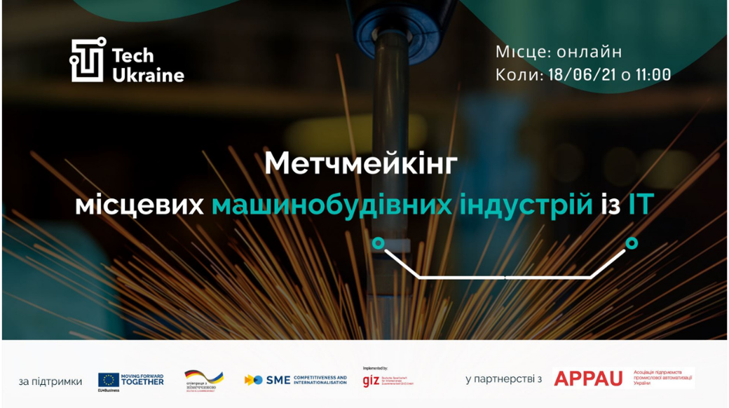 18 червня о 11.00 запрошуємо вас на онлайн Метчмейкінг подію для представників машинобудівних індустрій та IT, що має на меті поєднання компаній з двох галузей задля пошуку надійного партнера для діджиталізації бізнесу.