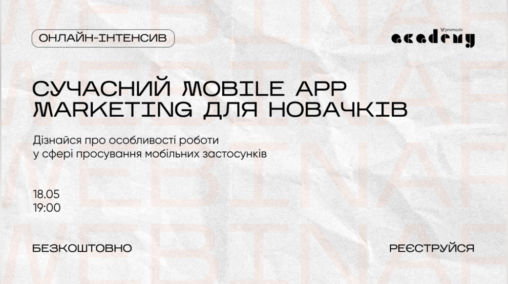 Безкоштовний онлайн-інтенсив, який допоможе тобі краще пізнати сферу просування мобільних застосунків. На заході з’ясуємо: ✅ що таке User Acquisition та App Store Optimization і як вони пов’язані; ✅ інструменти для залучення користувачів; ✅ роль штучного інтелекту в просуванні мобільних застосунків; ✅ перспективи галузі в Україні та за кордоном; ✅ як стати ASO- чи UA- спеціалістом. Після заходу ти не лише матимеш базове уявлення про Mobile App Marketing, а й отримаєш короткий гайд, що потрібно знати спеціалісту-початківцю, щоб знайти свою першу роботу в цій ніші.