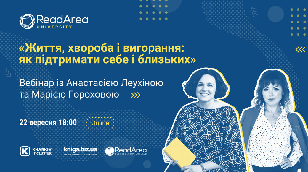 Запрошуємо вас на онлайн-захід "Життя, хвороба і вигорання: як підтримати себе та близьких" з Анастасією Леухіною та Марією Гороховою, що відбудеться 22 вересня о 18:00 у партнерстві з Kharkiv IT Cluster та Kniga.biz.ua.