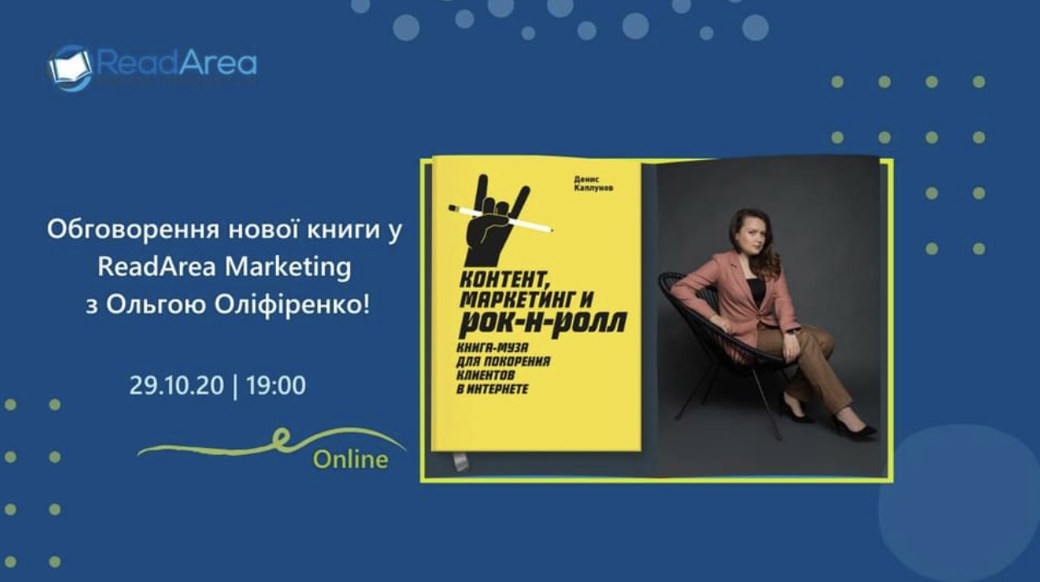 Відкриваємо сезон обговорень потоку #ReadAreaMarketing з Ольгою Оліфіренко! Цього разу будемо обговорювати книгу «Контент, маркетинг і рок-н-рол» Дениса Каплунова.