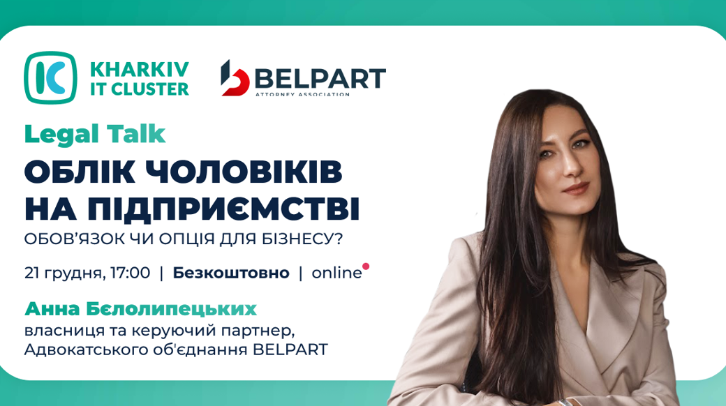 Kharkiv IT Cluster запрошує вас на Legal Talk, який відбудеться 21 грудня о 17:00.