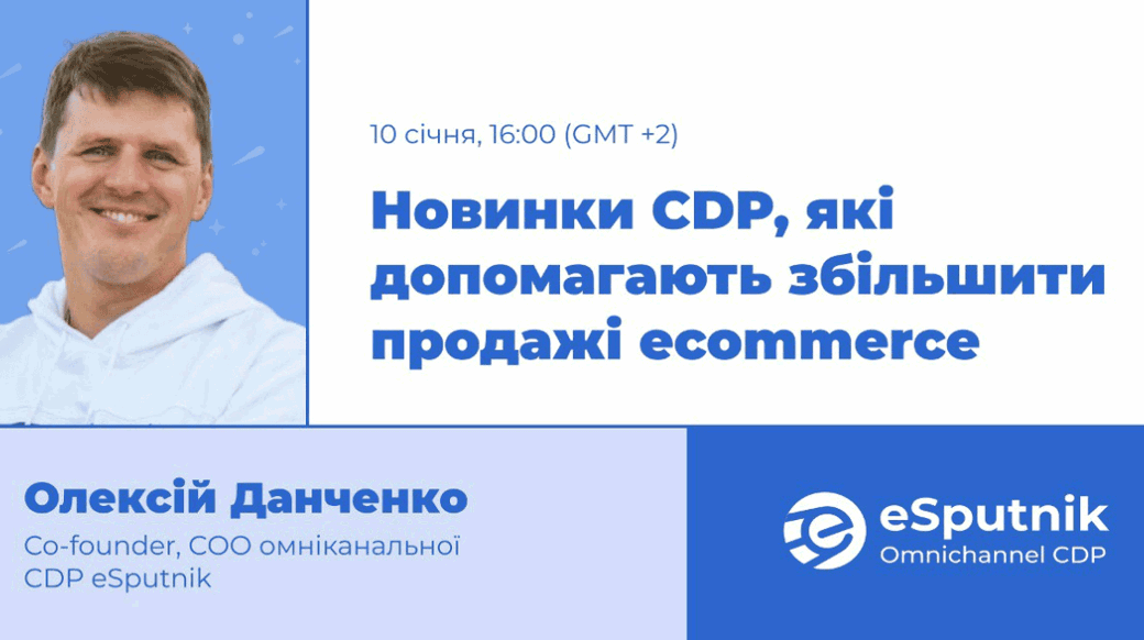Спікер: Олексій Данченко, Co-founder, COO омніканальної CDP eSputnik. Бізнес-консультант, 9+ років досвіду. Спеціаліст зі стратегічного розвитку бізнесу, побудови систем управління та маркетингу. Експерт Email Messaging Optimization, сертифікований найбільшим у світі інститутом маркетингових досліджень MECLABS.