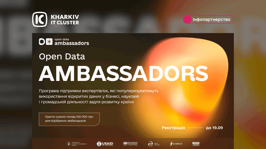 👉 Ексклюзивний статус Амбасадорів відкритих даних; 👉 Грант сумою понад 100 000 грн на реалізацію проєкту амбасадора; 👉 Персоналізовану освітню програму; 👉 Можливості для нетворкінгу та розвитку особистого бренду; 👉 Участь у розбудові української спільноти сфери відкритих даних. Більше деталей, реєстрація та номінація кандидатів за посиланням: https://www.opendatatech.org/ambassadors Дедлайн реєстрації: 19 вересня 2024 року. Open Data Ambassadors реалізується за підтримки Міністерства цифрової трансформації та завдяки проєкту «Підтримка цифрової трансформації», що фінансується USAID і UK Dev. Виконавчий партнер у реалізації проєкту — організація SocialBoost.🔥 Open Call для експертів/ок в IT та data, бізнесі, громадській діяльності та науці: номінуйтесь на Open Data Ambassadors!