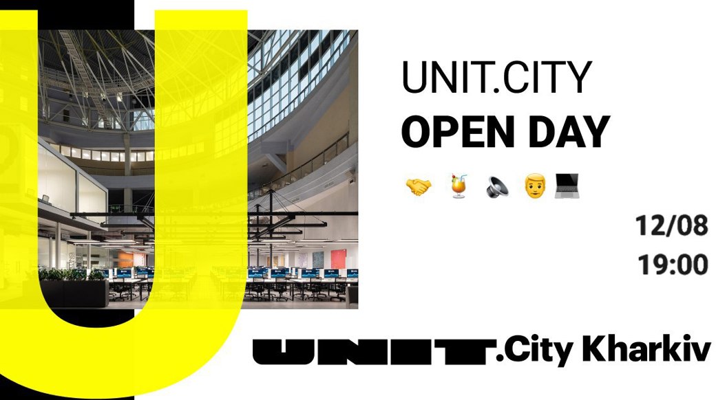 💃 Екскурсія парком 🤝 Знайомство з керівниками та резидентами 👨💻 Урочисте відкриття зони коворкінгу 📡 СОО UNIT.City Kharkiv Антон Шкоропатенко проведе інтерв’ю з Євгеном Білошицьким, амбасадором Upwork у Харківському регіоні 🎉 Розіграш крутих подарунків 🍹 Нетворкінг та фуршет Це все чекатиме тебе на першому OPEN DAY у UNIT.City Kharkiv.UNIT.City Kharkiv OPEN DAY — це день, коли ти зможеш приєднатися до інноваційної атмосфери та відчути, як таланти й бізнеси об’єднується в одну екосистему для розвитку інновацій. ⏰ Коли: 12 серпня (середа), 19:00 Вхід – вільний, лише за умови попередньої реєстрації. Кількість місць обмежена. Усіх умов щодо забезпечення безпеки під час карантину буде дотримано. Усі подробиці - пізніше. Слідкуйте за новинами на сторінці UNIT.City Kharkiv ;)