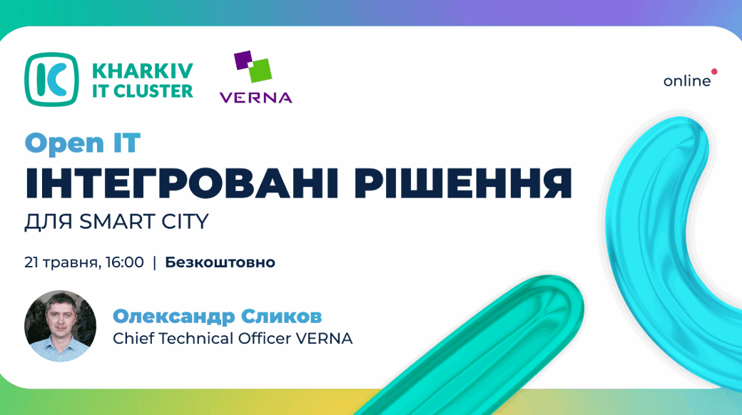 Online, ZOOM😻«Інтегровані рішення для Smart City» ⏳ Коли? 21 травня о 16:00 🌐 Де? онлайн, ZOOM 🗣️ Спікер: Олександр Сликов — Chief Technical Officer VERNA.