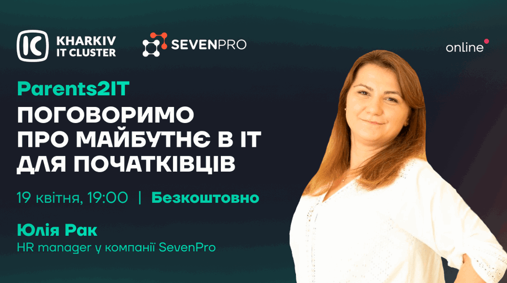 👉 Ви з дитиною на роздоріжжі: яку професію обрати? 👉 Не знаєте, чи ще актуальне ІТ? 👉 Не знаєте, чи підійде вашій дитині сфера ІТ? 👉 Маєте сумніви щодо вибору університету? За вікном весна, а це означає, що вже за декілька місяців випускники складатимуть НМТ та обиратимуть університети для вступу. На цьогомісячній зустрічі Parents2IT ми поговоримо про майбутнє ІТ-галузі та майбутнє початківців: 🔹Чи варто йти до ІТ та чи буде цей фах у попиті в майбутньому? 🔹Чи дійсно ІТ — це тільки для розумних? 🔹Які напрямки існують в ІТ? 👉 Запрошуємо вас доєднатися до зустрічі з Юлією Рак — HR manager у компанії SevenPro, яка занурить нас в ІТ-галузь, поділиться власним досвідом і власними спостереженнями. 📅19 квітня, середа ⏰19:00 📍Online, Zoom 📌Чи варто щось робити вже зараз аби в майбутньому було легше адаптуватись в ІТ? Де навчають ІТ, чи варто вступати до університету або достатньо завершити курси? Про це та багато іншого ми поговоримо на зустрічі вже наступної середи! Реєструйтесь за посиланням та отримуйте нагадування в день заходу!