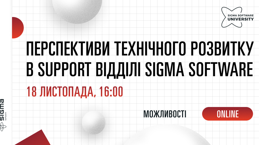 18 листопада Sigma Software запрошує тебе на онлайн зустріч «Перспективи технічного розвитку в Support»