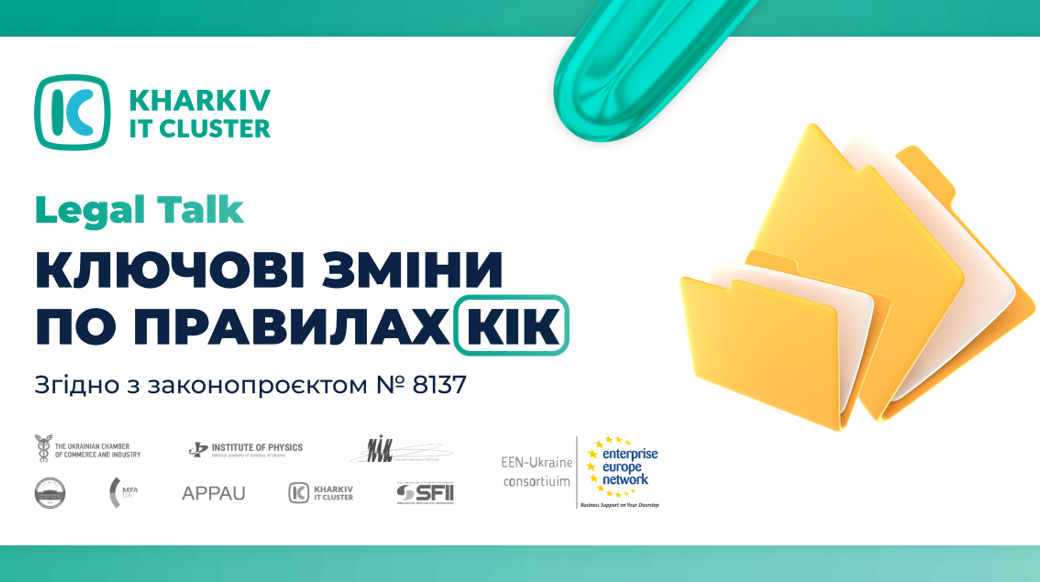 ⚖️ Запрошуємо Вас узяти участь у закритому вебінарі Legal Talk від Kharkiv IT Cluster та EEN Ukraine: «Про ключові зміни за правилами КІК згідно із законопроєктом № 8137»