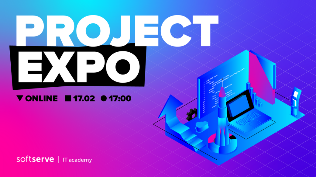 Адженда: 17:00 – 17:25 - познайомимось з Андрієм Переймибідою, Talent Acceleration Center Director та Лесею Клакович, SoftServe IT Academy Manager. Андрій коротко розповість про ролі на проєкті та як вони працюють. 17:30 – 17:50 - Віра Чернюх, Senior English Teacher, розповість про англійську мову в IT: tips and tricks 17:50 – 18:50 - презентації проєктів 18:50 – 19:15 - проголосуємо та нагородимо найкращі проєкти та команди. Це твій шанс побачити, як усе працює зсередини та отримати цінні інсайти від студентів та менеджерів. А головне - знайти свій проєкт для стажування. Побачимось!