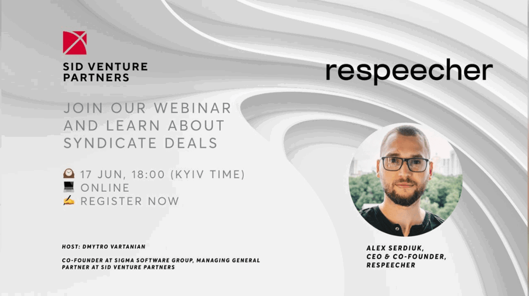 🎉 SID Venture Partners, найбільш активний венчурний фонд України, оголошує новий проєкт для синдикатних інвестицій — Respeecher.